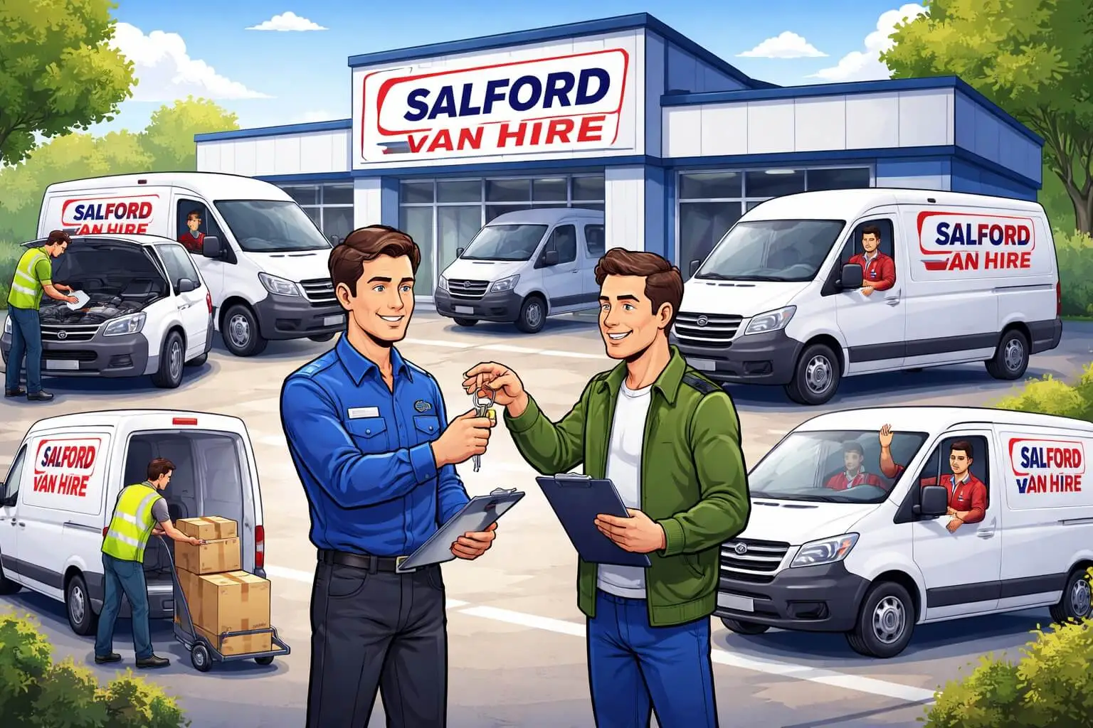 People in Salford usually book a van online or over the phone. You choose the type of van, the dates you want to rent it, and the time you want to pick it up. It’s a good idea to book ahead of time, especially on weekends and during busy times. Some businesses require a small deposit to hold the reservation.