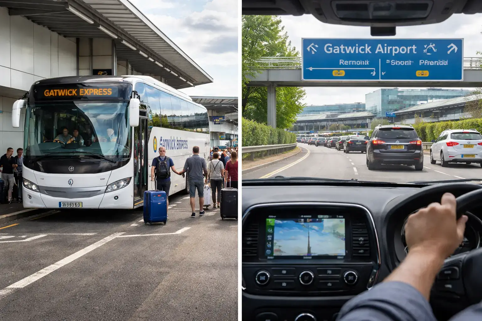 It can be tiring to drive to Gatwick, especially when the roads are busy. Delays can happen because of traffic jams, road work, and bad weather. The driver needs to stay focused all the time, which can be stressful before a flight.